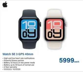 This special is available in various stores, view all products to get the cheapest Apple Watch SE 3 GPS 40mm. If you'd like to find out whether this product has a bigger discount in another store, check the category 'Electronics'. You may also find these specials interesting: Apple Watch SE GPS 40mm, Apple 40 mm Watch SE 3 GPS + Cell 40 mm & Apple Watch 11 42mm GPS.