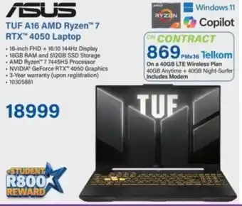 Now on special at Incredible Connection: ASUS TUF A16 AMD Ryzen 7 RTX 4050 Laptop ✅ Valid from 29-12 to 2-02.