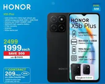 This special is available in various stores, view all products to get the cheapest Honor X5b Plus. If you'd like to find out whether this product has a bigger discount in another store, check the category 'Electronics'. You may also find these specials interesting: HONOR X5b Plus, HONOR X5b Plus & Honor X5c Plus.
