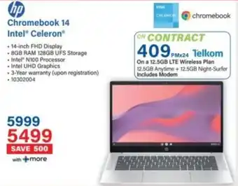 Incredible Connection offers a wide collection of products, besides the HP Chromebook 14 Intel Celeron. Keep an eye on the weekly Incredible Connection catalogue to find the best specials and promotions. Besides HP Chromebook 14 Intel Celeron, you can also find the following offers: HP 250 Intel Celeron N100 Essential Family Bundle 10304234, HP G9 Celeron 8GB 256GB SSD & Proline 14 Intel Celeron Laptop.