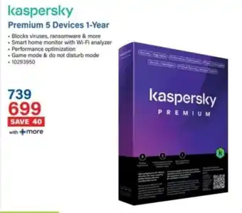 This special is available in various stores, view all products to get the cheapest Kaspersky Premium 5 Devices 1-Year. If you'd like to find out whether this product has a bigger discount in another store, check the category 'Electronics'. You may also find these specials interesting: Kaspersky Standard 3 Devices 1-Year, Kaspersky Plus 3 Devices 1-Year & Kaspersky Plus 5 Devices 1-Year.