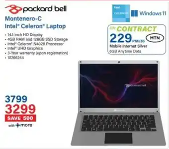 Incredible Connection offers a wide collection of products, besides the Packard Bell Montenero-C Intel Celeron Laptop. Keep an eye on the weekly Incredible Connection catalogue to find the best specials and promotions. Besides Packard Bell Montenero-C Intel Celeron Laptop, you can also find the following offers: Packard Bell Montenero C82 Intel Celeron Laptop, Packard Bell Montenero C82 Intel Celeron N4020 (10304101) & Packard bell montenero c82 intel celeron n4020.