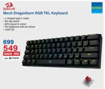 The Redragon Mech Dragonborn RGB TKL Keyboard is available this week at Incredible Connection as part of a special promotion. On this page, you’ll find everything about the promotional price, terms, and current specials. Browse related promotions and offers for Redragon Mech Dragonborn RGB TKL Keyboard to make sure you don’t miss out.