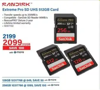 SanDisk Extreme Pro SD UHS 512GB Card offers and online specials, directly from Incredible Connection