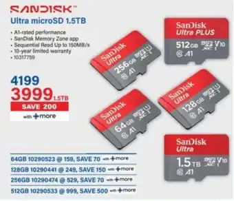 This SanDisk Ultra microSD 1.5TB is currently available as part of a special promotion at Incredible Connection. Be sure to check the current promotions filled with competitive prices and deals. You can order SanDisk Ultra microSD 1.5TB online via Incredible Connection website or get it at the best available price. Cataloguespecials.co.za collects the most relevant SanDisk Ultra microSD 1.5TB offers and specials for you. Want to be notified first? Click the bell icon to receive a free alert when the product is part of a new promotion or available again.