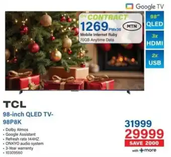 Now on special at Incredible Connection: TCL 98-inch QLED TV- 98P8K ✅ Valid from 17-12 to 28-12.