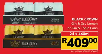 Black Crown Gin & Dry Lemon or Gin & Tonic Cans Discount at Jumbo