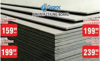 This special is available in various stores, view all products to get the cheapest Gyproc plaster ceiling board. If you'd like to find out whether this product has a bigger discount in another store, check the category 'Wholesale'. You may also find these specials interesting: Gyproc Plaster Ceiling Board 3.0 x 0.900mm x 6.4mm, Ceiling Board 3m x 1.2m 35053 & Rhino Ceiling Board.