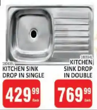 KitKat Cash and Carry offers a wide collection of products, besides the Kitchen sink drop in single. Keep an eye on the weekly KitKat Cash and Carry catalogue to find the best specials and promotions. Besides Kitchen sink drop in single, you can also find the following offers: Sink Drop-In 1200 x 500 Including Waste 42654/45680, Sink Drop-In 915 x 460 Including Waste 42654/45680 & Butler Plain Single Bowl Kitchen Sink 605 x 408 x 200mm-Each.