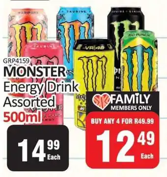 This special is available in various stores, view all products to get the cheapest Monster Energy Drink Assorted 500ml. If you'd like to find out whether this product has a bigger discount in another store, check the category 'Wholesale'. You may also find these specials interesting: MONSTER Energy Drink, Monster Energy Drink & Monster Energy Drink.