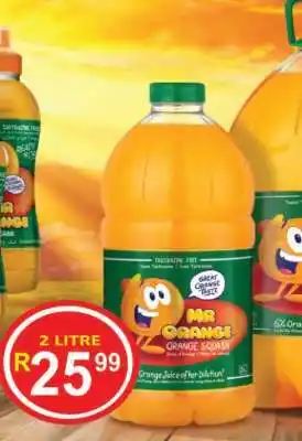 This special is available in various stores, view all products to get the cheapest Mr Orange Orange Squash. If you'd like to find out whether this product has a bigger discount in another store, check the category 'Wholesale'. You may also find these specials interesting: MR. ORANGE 6% Squash or RASCALS Sports Drink, OROS Orange Squash & SUNNY Orange Squash.