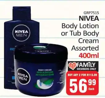 NIVEA Body Lotion or Tub Body Cream Assorted offers and online specials, directly from KitKat Cash and Carry