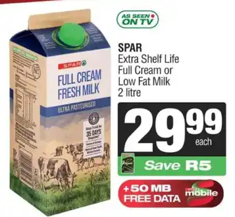 SPAR Extra Shelf Life Full Cream or Low Fat Milk 2 L