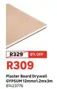 GYPSUM Plaster Board Drywall 12mm X 1.2m X 3m 81423776 promotion at Leroy Merlin