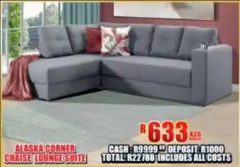 This special is available in various stores, view all products to get the cheapest Alaska corner chaise lounge suite. If you'd like to find out whether this product has a bigger discount in another store, check the category 'Home furniture'. You may also find these specials interesting: Tracy Corner Chaise Lounge Suite with Console, 2-Division Tracy Corner Chaise Lounge Suite with Console & Eden corner lounge suite.