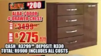 This Alba 1-door 4-drawerchest is available in the following branches based on your set location: