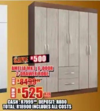 This special is available in various stores, view all products to get the cheapest Amelia mk3 6-door 2-drawer robe. If you'd like to find out whether this product has a bigger discount in another store, check the category 'Home furniture'. You may also find these specials interesting: Jasmine 4-door 3-drawer mirror robe, Angelo 4-door 3-drawer mirror robe & Brooklyn 3 door robe.