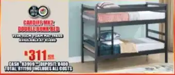 This special is available in various stores, view all products to get the cheapest Cardiff mk2 double bunk bed. If you'd like to find out whether this product has a bigger discount in another store, check the category 'Home furniture'. You may also find these specials interesting: Canterbury Double Bunk Bed, Double Bunk 8-484 & Homestead Walnut-Finish Double Bunk.