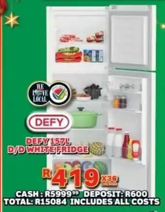 Now on special at Lewis: Defy double door white fridge ✅ Valid from 8-12 to 4-01.