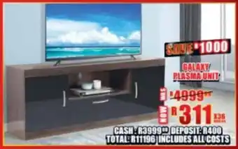 This special is available in various stores, view all products to get the cheapest Galaxy plasma unit. If you'd like to find out whether this product has a bigger discount in another store, check the category 'Home furniture'. You may also find these specials interesting: Tuscany plasma unit, Rose plasma stand & Blacksmith 10 mm DC Plasma Cutter.
