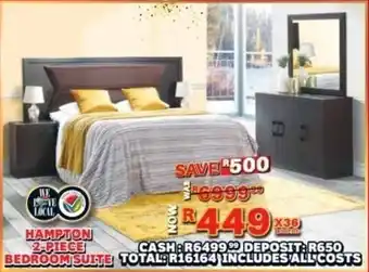 This special is available in various stores, view all products to get the cheapest Hampton bedroom suite. If you'd like to find out whether this product has a bigger discount in another store, check the category 'Home furniture'. You may also find these specials interesting: Lunar bedroom suite, Layla bedroom suite & Kudu bedroom suite.