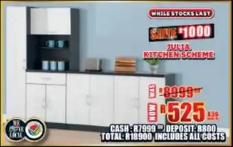 This special is available in various stores, view all products to get the cheapest Julia kitchen scheme. If you'd like to find out whether this product has a bigger discount in another store, check the category 'Home furniture'. You may also find these specials interesting: Casablanca kitchen scheme, Milla Kitchen Scheme & Rachel kitchen scheme.