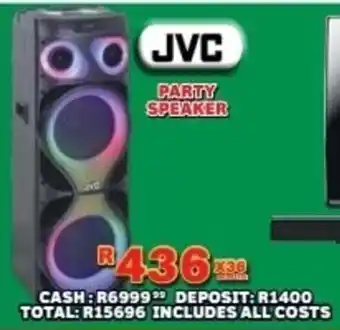 This special is available in various stores, view all products to get the cheapest JVC Party Speaker. If you'd like to find out whether this product has a bigger discount in another store, check the category 'Home furniture'. You may also find these specials interesting: JVC acrylic party speaker, JVC 2 x 6.5 1200W BT Home Theatre Party Speaker XS-N4213PB 23-819 & Volkano party speaker.