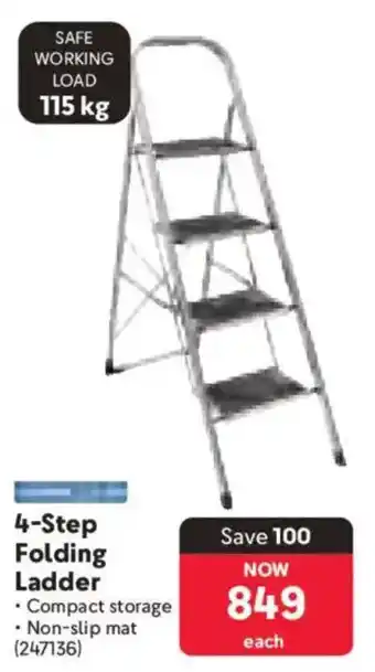 The 4-Step Folding Ladder is available this week at Makro as part of a special promotion. On this page, you’ll find everything about the promotional price, terms, and current specials. Browse related promotions and offers for 4-Step Folding Ladder to make sure you don’t miss out.