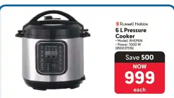 This special is available in various stores, view all products to get the cheapest 6 L Pressure Cooker. If you'd like to find out whether this product has a bigger discount in another store, check the category 'Wholesale'. You may also find these specials interesting: Russell Hobbs Pressure Cooker, Gas cylinder cooker top & Clicks Blood Pressure Monitors.