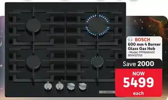 BOSCH 4 Burner Glass Gas Hob Offer at Makro