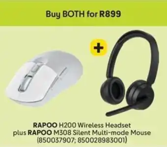 RAPOO H200 Wireless Headset plus RAPOO M308 Silent Multi-mode Mouse