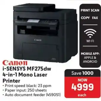 Canon i-SENSYS MF275dw 4-in-1 Mono Laser Printer promotion at Makro