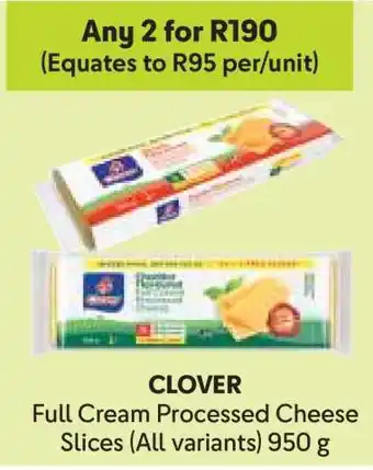 CLOVER Full Cream Processed Cheese Slices (All variants) 950 g promotion at Makro