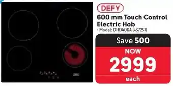 Makro offers a wide collection of products, besides the DEFY Touch Control Electric Hob. Keep an eye on the weekly Makro catalogue to find the best specials and promotions. Besides DEFY Touch Control Electric Hob, you can also find the following offers: DEFY 600 mm Touch Control Electric Hob, DEFY Vitroceramic Touch Control Hob & DEFY Vitroceramic Touch Control Hob (DHD406A).