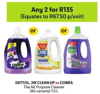 DETTOL, JIK CLEAN UP or COBRA Tile All Purpose Cleaner Offer at Makro