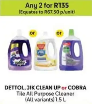 DETTOL, JIK CLEAN UP or COBRA Tile All Purpose Cleaner promotion at Makro