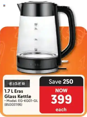 EIGER Eras Glass Kettle Offer at Makro