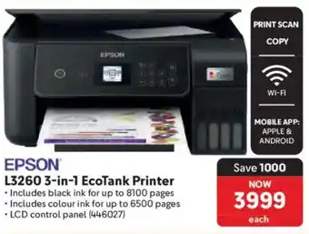 Epson L3260 3-in-1 EcoTank Printer offers and online specials, directly from Makro