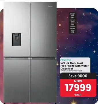 Hisense 4-Door Frost- Free Fridge with Water Dispenser promotion at Makro