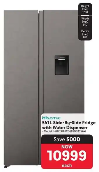 Hisense Side-By-Side Fridge with Water Dispenser Offer at Makro