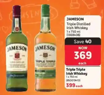 The JAMESON Triple Distilled Irish Whiskey is now available with a discount at Makro. On this page, you’ll find everything about the current price, promotion conditions, and how long the offer is valid. Also explore other offers and promotions for JAMESON Triple Distilled Irish Whiskey to make a smart and cost-effective choice.
