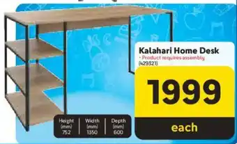 The price of Kalahari Home Desk can be found at the top of the page, together with the dates during which the special is available. You can also check the price in the current Makro catalogue or on the Makro website. Promotional offers assure you of buying Makro products at the lowest price.