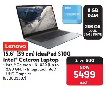 Makro offers a wide collection of products, besides the Lenovo 15.6" 39 cm IdeaPad S100 Intel Celeron Laptop. Keep an eye on the weekly Makro catalogue to find the best specials and promotions. Besides Lenovo 15.6" 39 cm IdeaPad S100 Intel Celeron Laptop, you can also find the following offers: Lenovo 39 cm 15.6" IdeaPad S100 Intel Celeron Laptop, Lenovo IdeaPad S100 Intel Celeron Laptop & Lenovo Ideapad Intel Celeron N4500 Laptop 10302420.