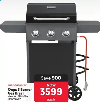 Megamaster Onyx 3 Burner Gas Braai offers and online specials, directly from Makro
