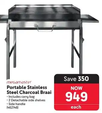 Megamaster Portable Stainless Steel Charcoal Braai promotion at Makro