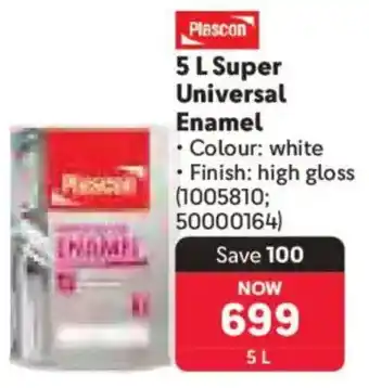 The Plascon Super Universal Enamel is now available with a discount at Makro. On this page, you’ll find everything about the current price, promotion conditions, and how long the offer is valid. Also explore other offers and promotions for Plascon Super Universal Enamel to make a smart and cost-effective choice.