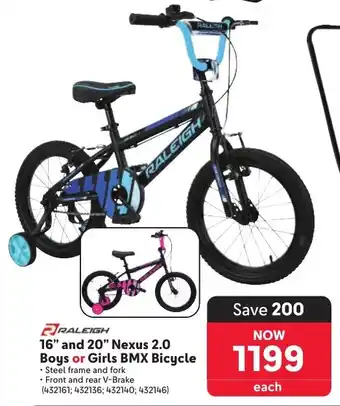 RALEIGH 16" and 20" Nexus 2.0 Boys or Girls BMX Bicycle Offer at Makro