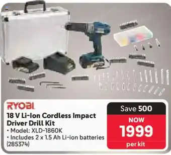 Ryobi 18 V Li-Ion Cordless Impact Driver Drill Kit Discount at Makro
