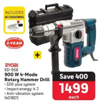 RYOBI 900 W 4-Mode Rotary Hammer Drill promotion at Makro