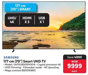 Samsung 177 cm 70" Smart UHD TV promotion at Makro